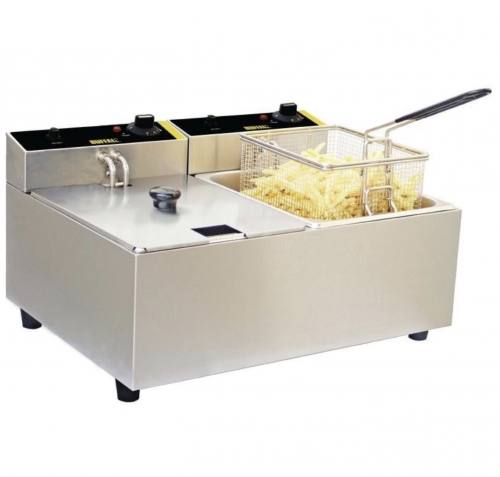 Deep Fat Fryer Double Well/Basket. Twin 5 Lt Oil Tank. Oil Capacity. Counter Top. Fitted with a 13 amp plug. Perfect for any event, party or occasion. All inclusive in our 'Free Return Dirty' Service.